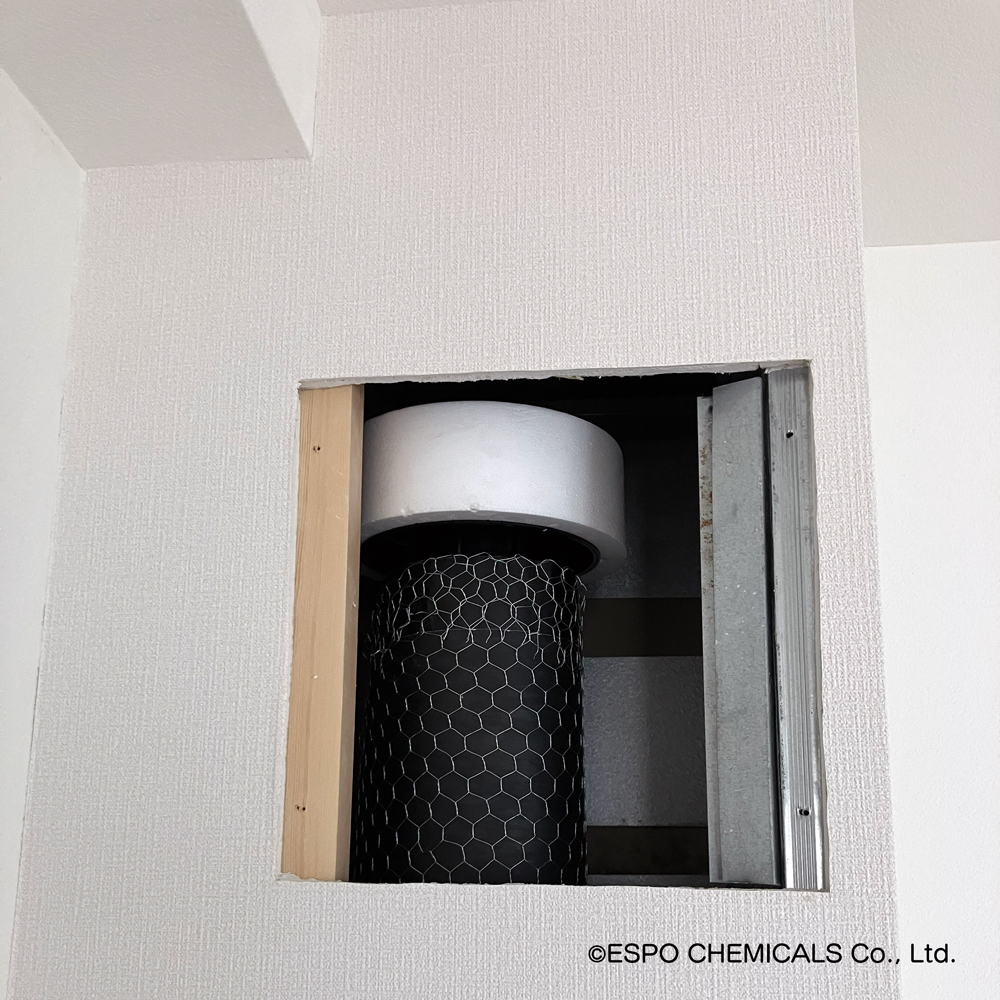 今回の異臭の原因は、壁の裏側に配管されたダクトキャップの緩みでした。