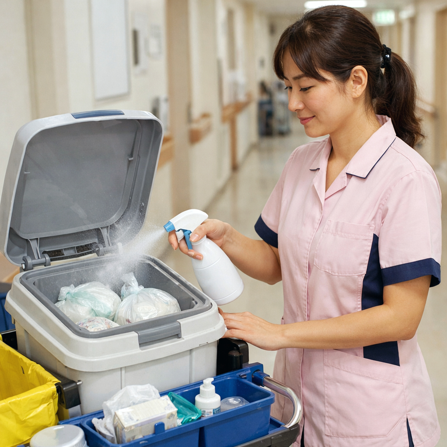 ゴミ置場や堆肥工場、病院や、介護施設における排泄物等の清掃時など、悪臭に起因する従業員のストレスや不快感を軽減し、過ごしやすい空間、労働環境を保ちます。