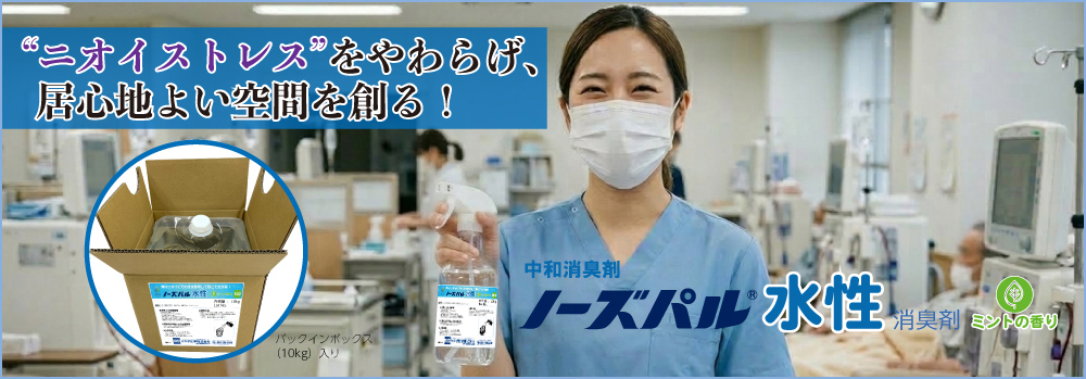 ノーズパル®水性消臭剤は、水溶性中和消臭剤として、火気厳禁の場所でも使用可能です。